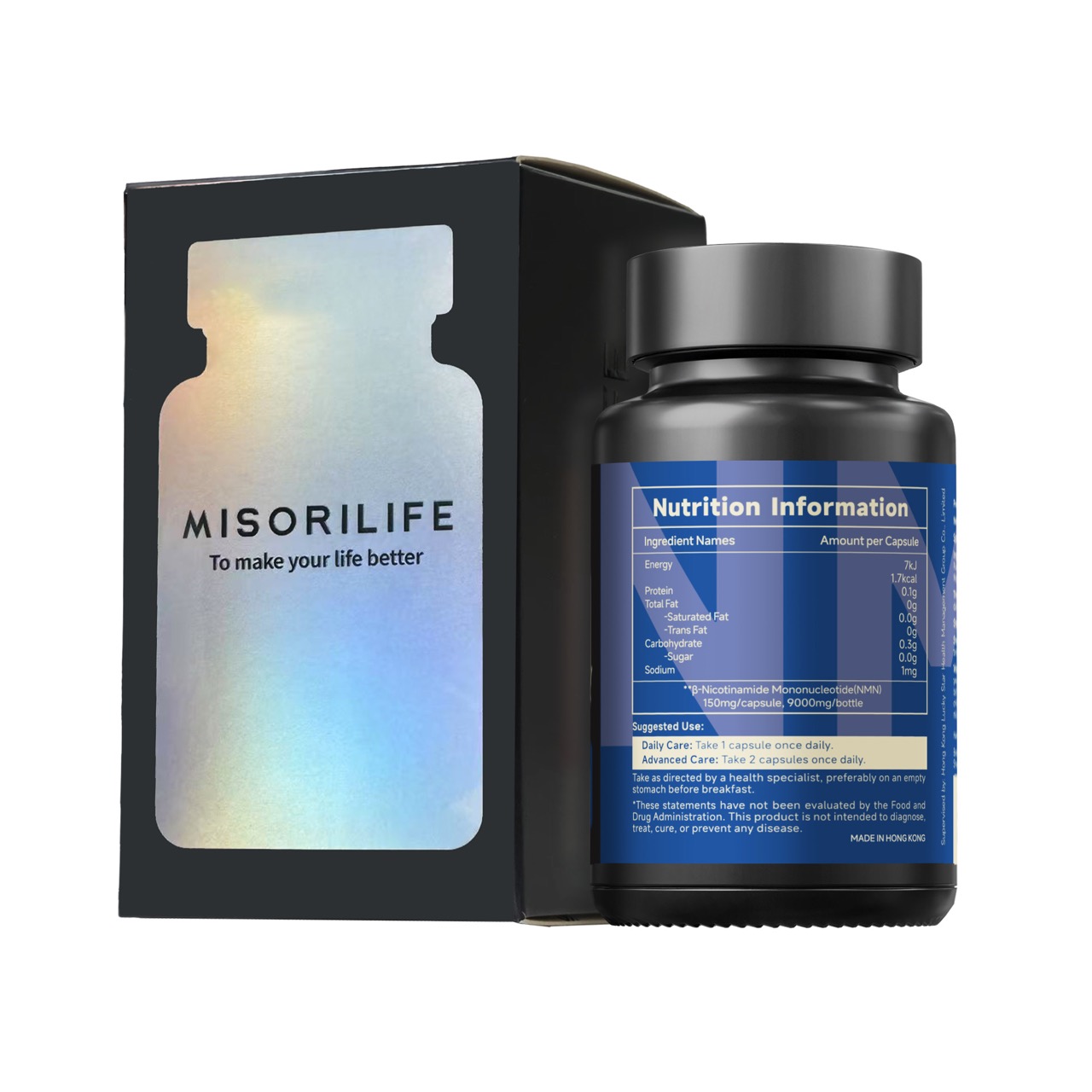 产品规格:1瓶/盒,60粒/瓶,500mg/粒(每粒含 NMN 150mg、玛咖粉 45mg、牡蛎肽 15mg、迷迭香提取物 15mg )